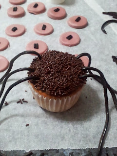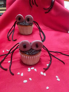 La primera inspiración fue con mis primeros cupcakes de calabaza, luego, me atreví con los cupcakes de arañas y viendo el resultado y el éxito que tuvieron en casa, mi hija me regalo para Navidad una clase de como elaborar y decorar estos deliciosos, pastelisto, pero eso ya os comentaré en otro momento, "que tengo sorpresas en mi próxima entrada".