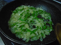 - En una sartén con aceite de oliva pochar muy despacito la cebolla, hasta que este tierna