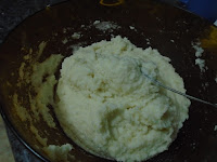 - En un pasapurés, triturar las berenjenas, incorporar la leche y los huevos y mezclar bien.